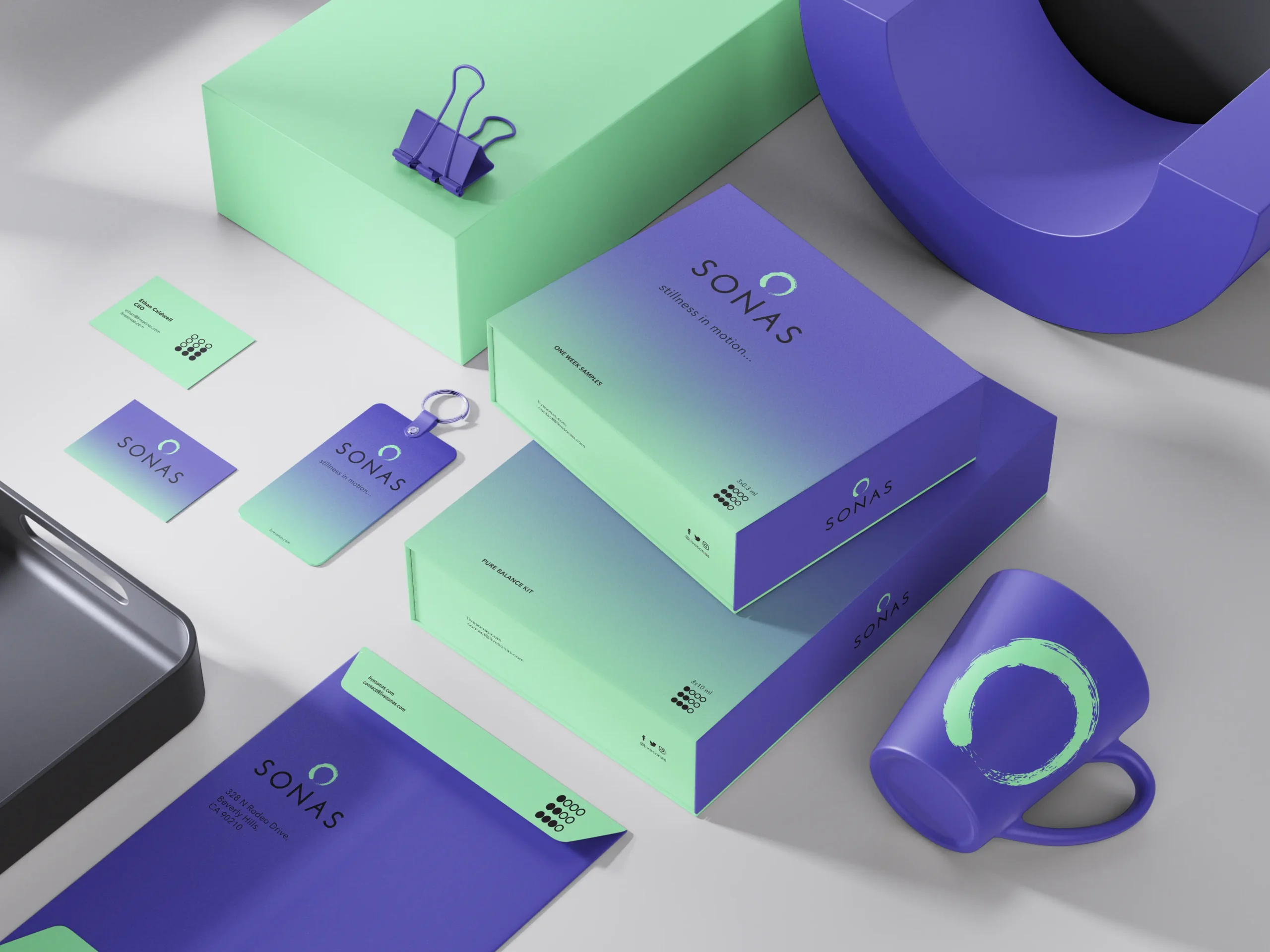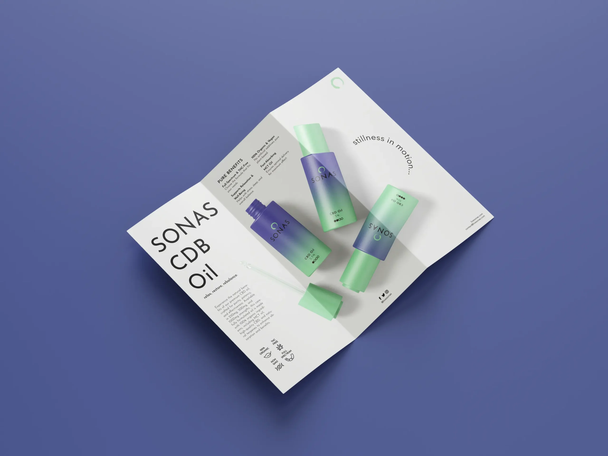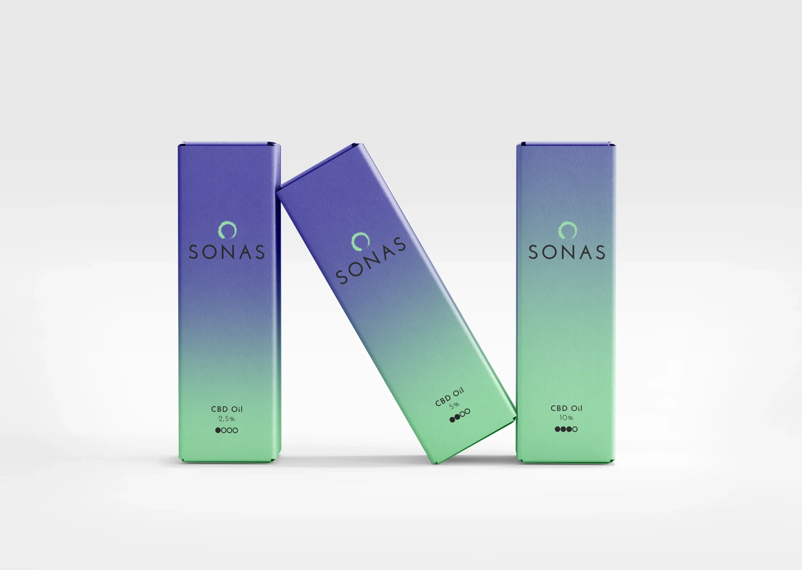 Sonas blends science and nature, offering nature‑friendly, clinically informed CBD solutions articulated through ‘stillness in motion,’ and, as a high‑end CBD oil brand, required premium packaging, print, and promotional assets to reflect its quality and wellness ethos with a cohesive identity.